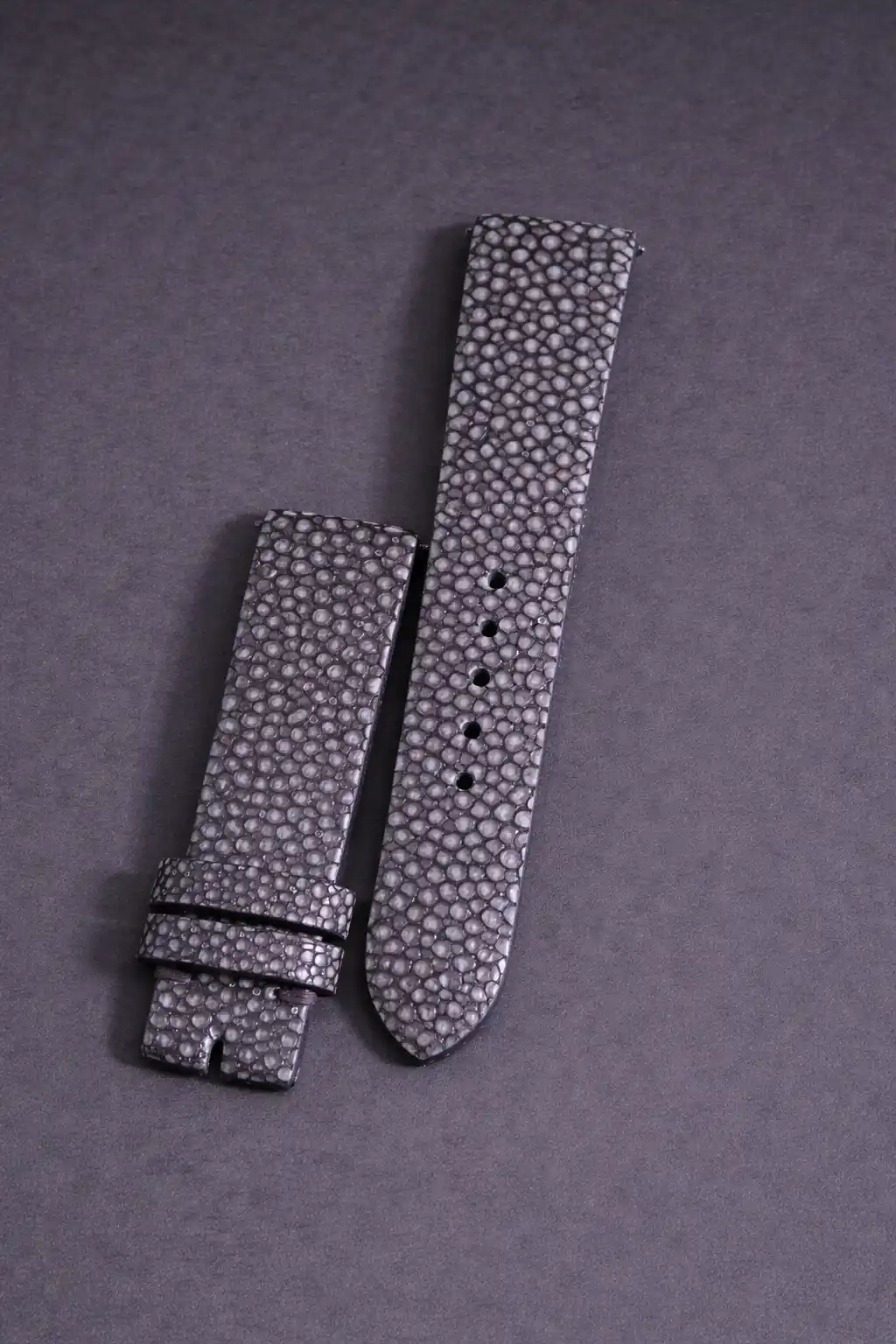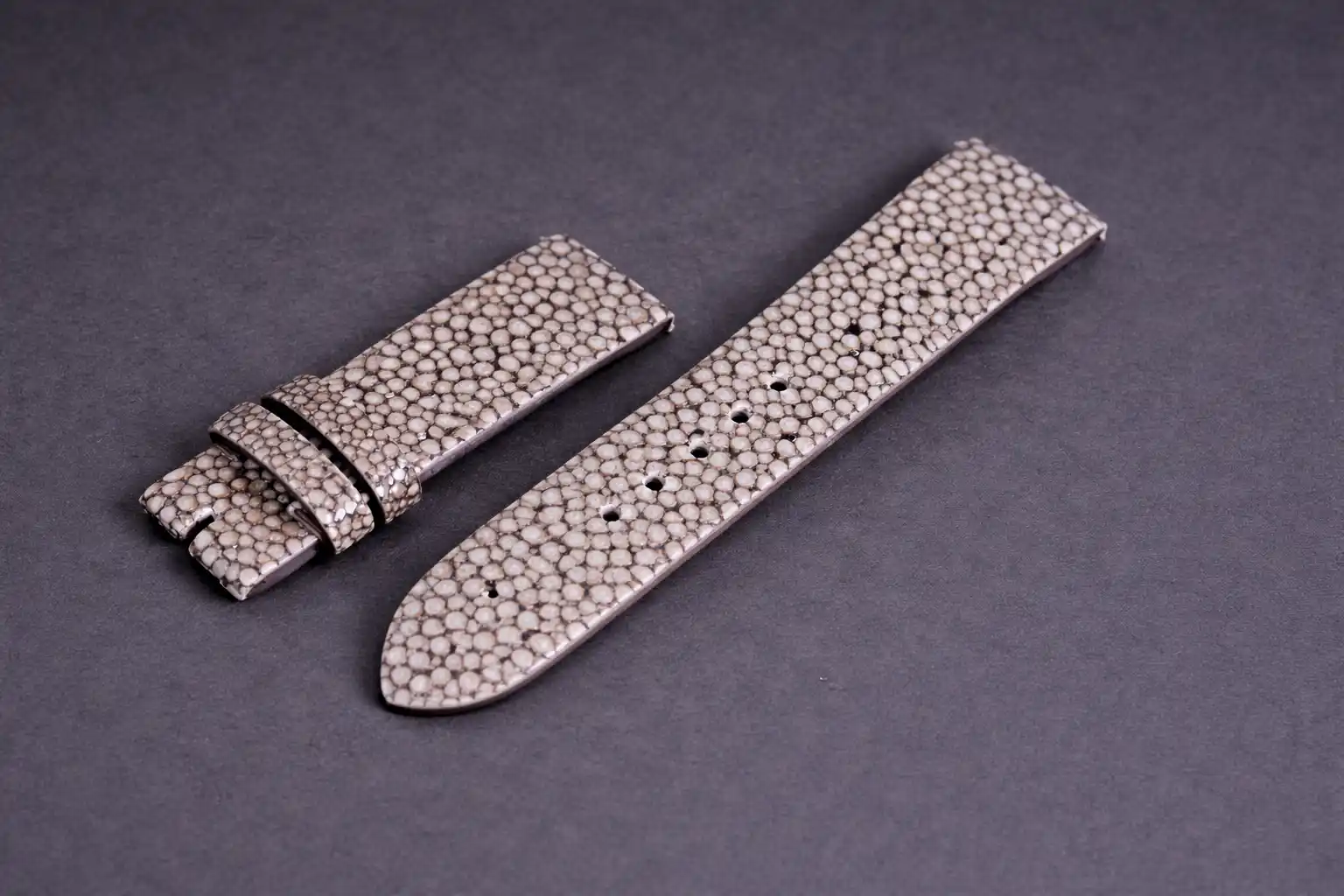 A strap designed to stand out. Stingray leather is known for its exceptional strength and unique pearly texture, which gives it a luxurious and recognizable look.