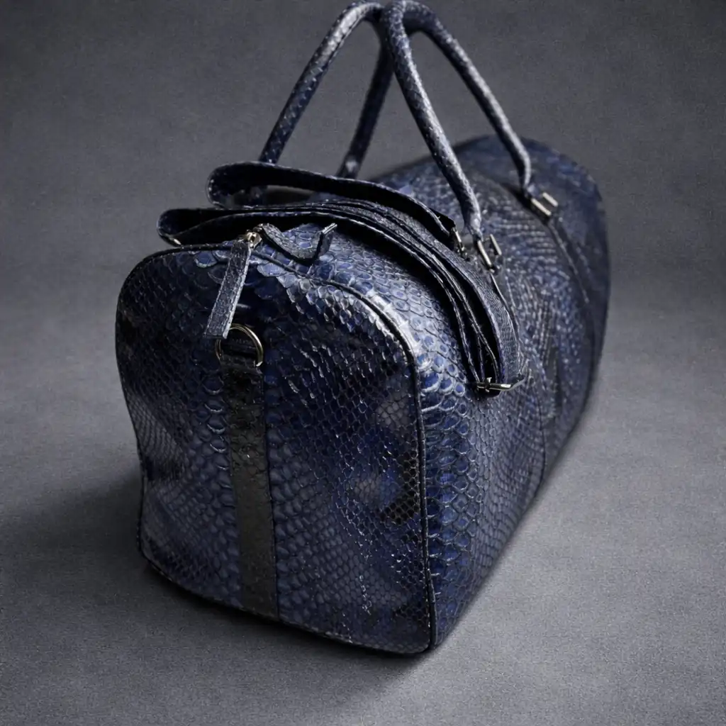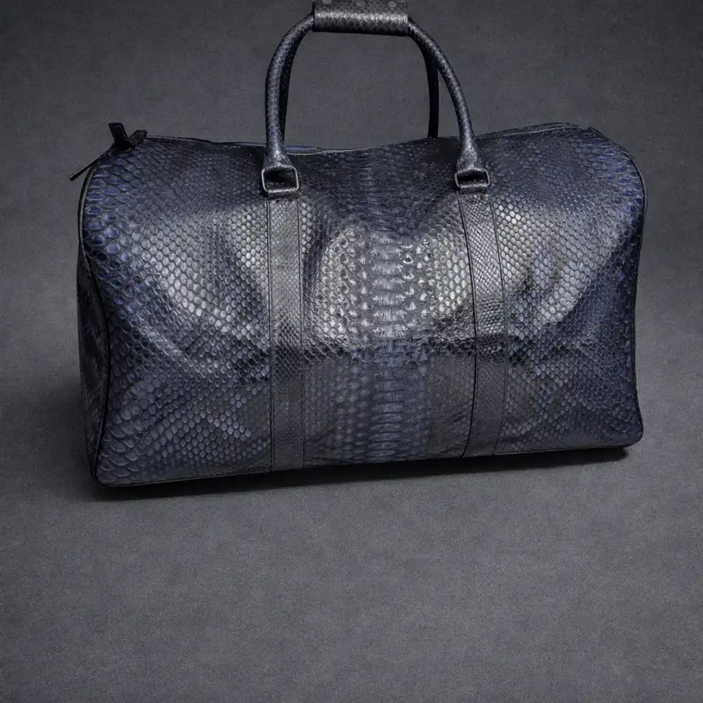 Dark blue python leather travel bag