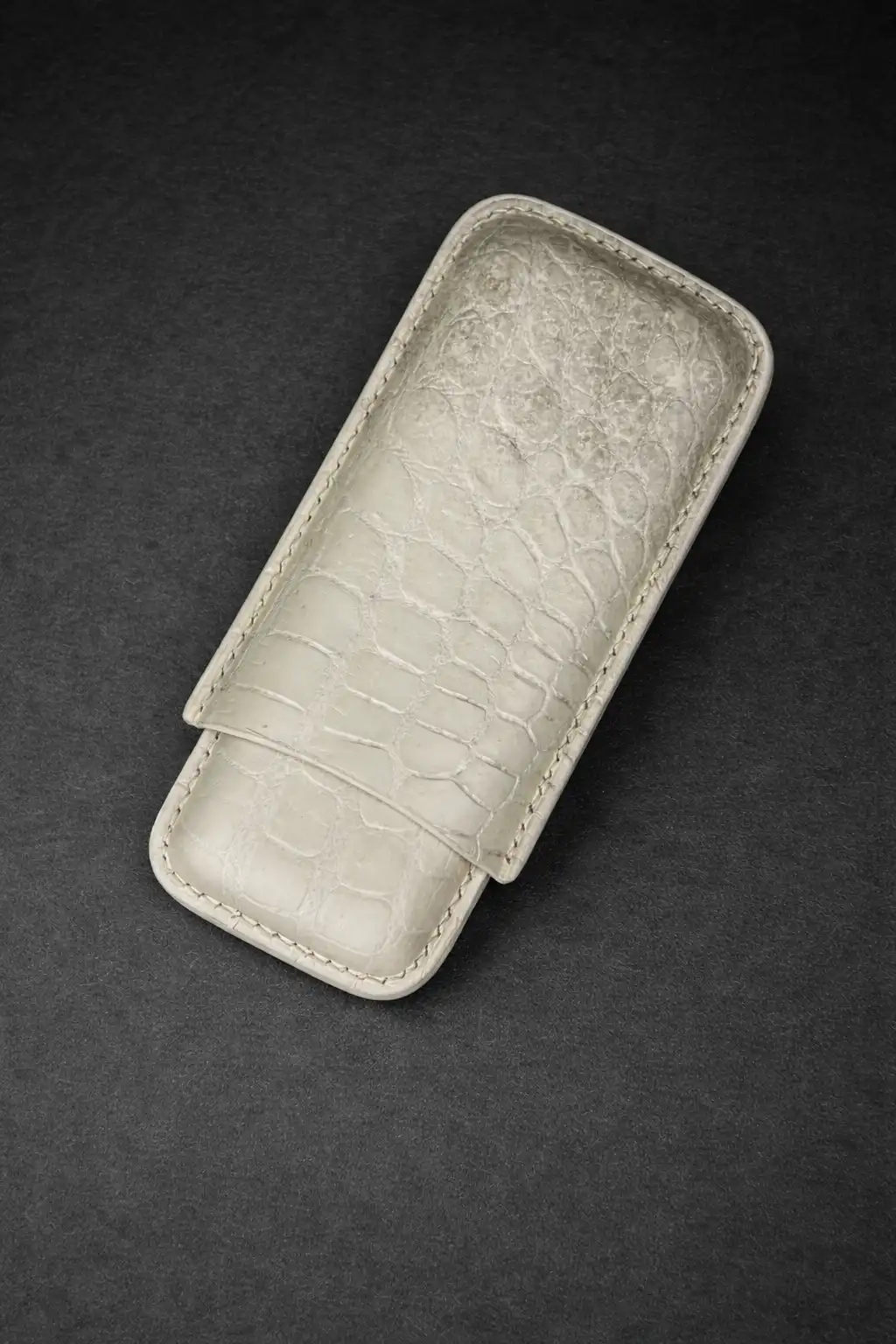Луксозен калъф за пури – естествена кожа от алигатор.