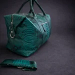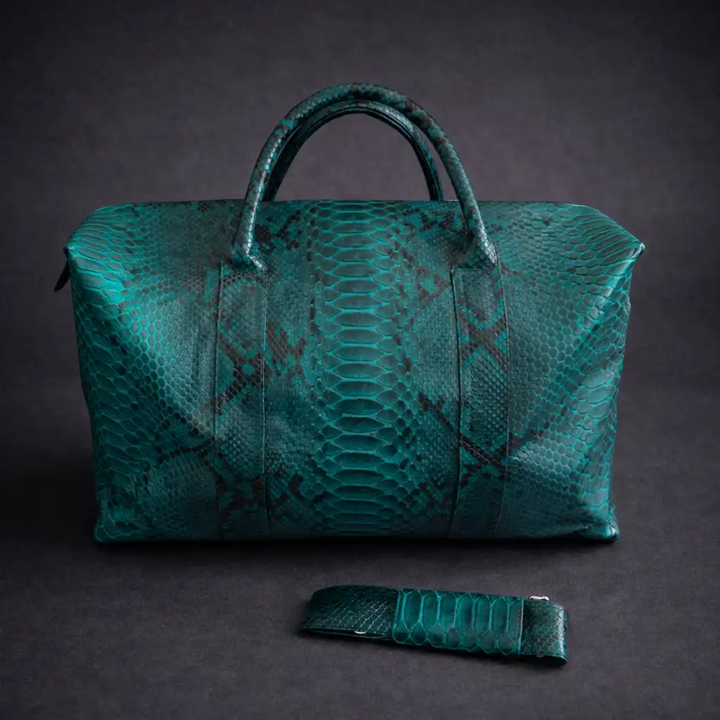 Зелена пътна чанта кожа от питон